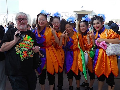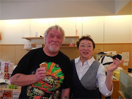 We docked around 7am and I have to say the Port is terrible here in Aomori and our cabin is opposite a scrap metal yard and to the left huge mountain!! A”special” lunch was he order of the day aptly named the British Pub Lunch altho the meal was only mediocre we had 5 more people joined us and we had a good laugh with not one mobile phone to be seen ! I wore my convict T,shirt and me flat ‘at..We took the shuttle bus to the one and only drop off point near a magnificent building that can only be described as a Triangle!! and then the fun began.Stalls were placed around the park and Magnificent Paper Mache Floats were on view for public exhibition.these floats would grace any Blackpool Illumination Show.Massive drums were on stage and kids danced,played the triangle,flutes all in a big competition and they all performed brilliantly.I had a few funny moments with the local ladies and they enjoyed the barter especially when I asked to be photographed with them.I t was long weary day and also our last port call,tomorrow we will be at Sea until Monday when we disembark ay Yokohama and head for an overnight stay at Narita afore we board the plane for London..It has been difficult getting Internet connection after all we are on holiday !!! The day ended by having yet more food a movie,also our disembarkation notice has been given to us and we have to have suitcases packed the night before we leave (by 8pm)