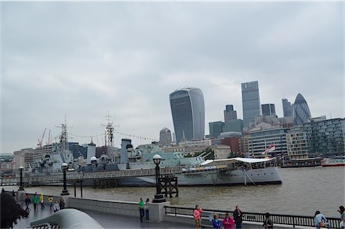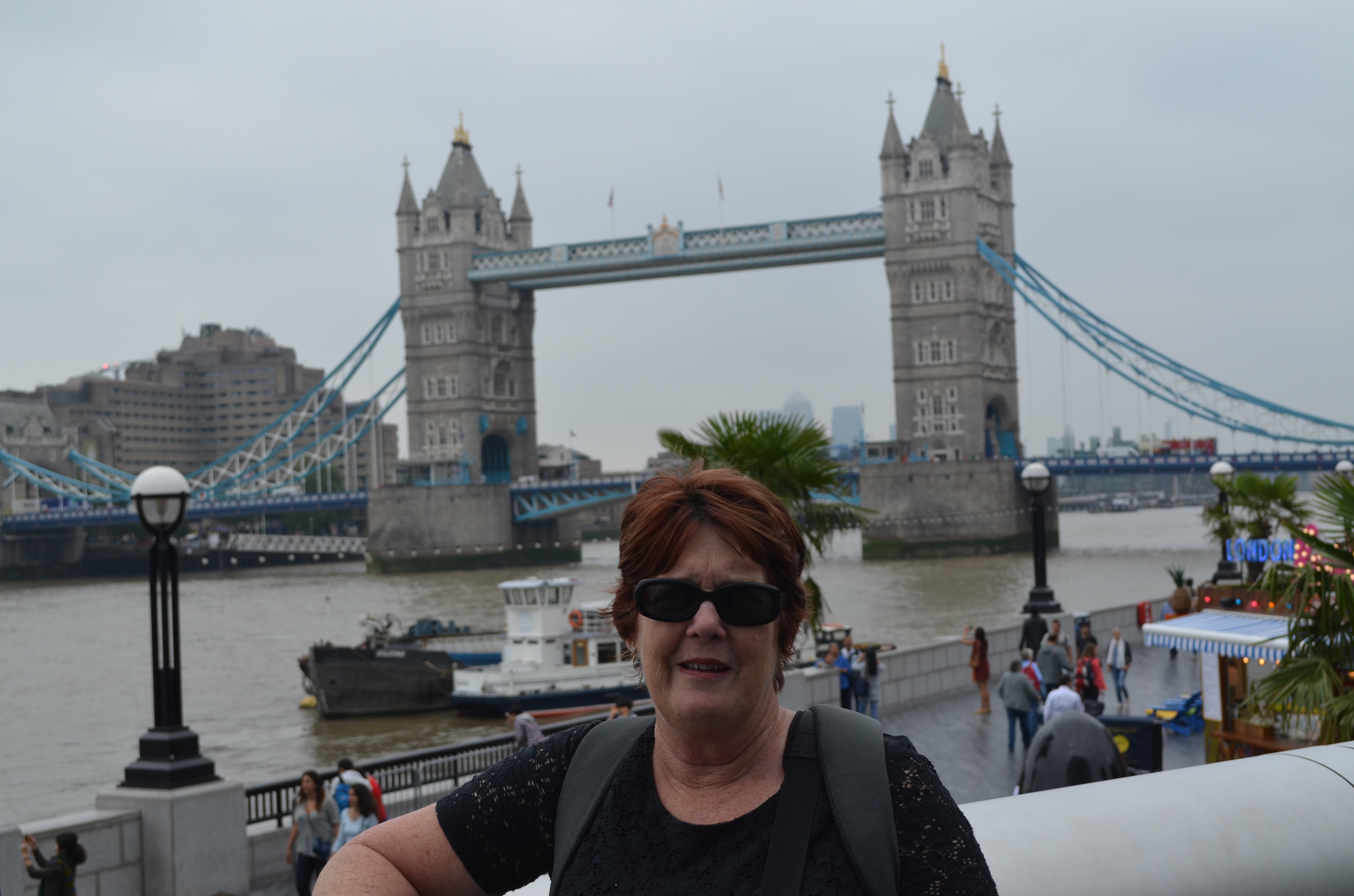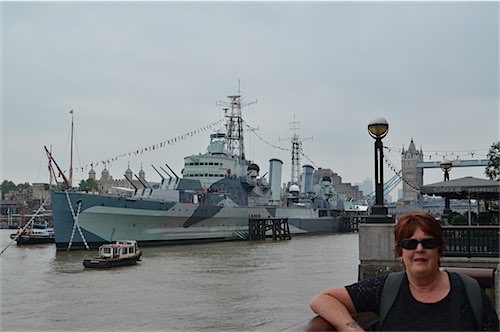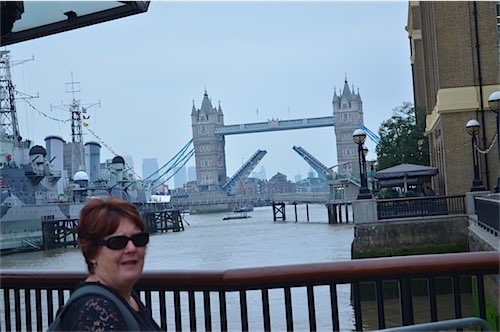 We took advantage of our Oyster Travel Card thats runs out at midnight today..SO..we jumped on a tube train and got of at London Bridge and walked around the very pleasant riverside walkway from Tower Bridge to London Bridge and even saw the Tower Bridge raised to let a tall masted ship thru! There was incredible structures to be seen and there was a MASSIVE steel sculpture featuring 2 sailors ! the Thames bridges are awesome and we managed to take some good photo,s before the rains started (first we have seen since being away) at this point we jumped ona bus once again using our cards and opted for ANY tube station where we promptly jumped on a train and landed at Kings Cross (this station is Londons main hub for above ground rail AND Tubeway) Apparently very soon after we left Kings Cross the station was closed down due to a drug bust !!!Since I was last at this Station a few years ago it has been thoroughly modernised and boasts a Platform 9.3/4 with lots of people waiting their chance of a photo shoot !! The Rains are very heavy now with a thunderstorm brewing so we opted for base after at last nipping into Macdonalds for an ice cream (OK so I,m addicted)