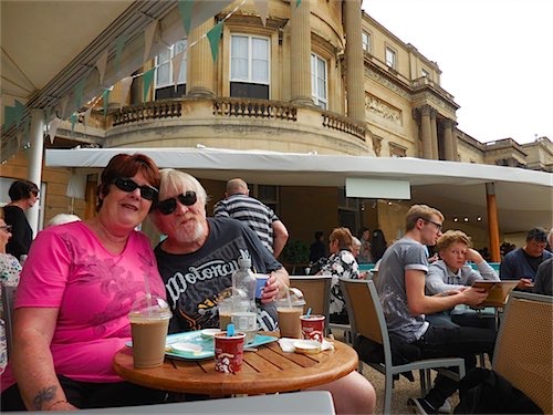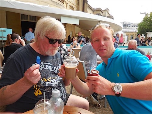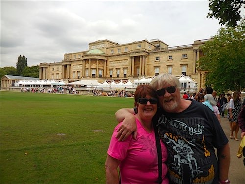 We had n Ice cream and drink on the outside lawn and when I told Annie its where the Queen holds her famous Garden Parties she was delighted Inside The Palace I was chatting to a fellow and in a split second his 3 yr old daughter disappeared and we had searched for 20 seconds when we spotted her sat the cordoned off Queens Throne!!,the highly embarrassed dad coaxed his daughter back and he headed towards the Exit,in the meantime the security alarm had gone off ( the perplexed dad was not aware of this as he had gone by his time) the security staff couldnt find where the alarm had gone off until I told them what had happened and they were happily satisfied with the explanation !! Next we moved onto the wharf at big ben and cruised up the River Thames for 90 minutes to Kew Gardens where we had a traditional pub lunch (Dinner to Pomms) of Steak Pie n Mash.The Captain of the Ferry Boat was very informative and also funny explaining various buildings as we sailed past including Apartments belonging to Michael Caine,Elton John and the late Cilla Black.The day was long we left at 10 am and arrived home 8pm and Annie has again walked my arse off !!