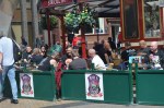 My love for my home town of Blackpool get stronger by the day,there is so much to see and do and this weekend is no exception! The Punk Rockers are in town est numbers around 400o and they have a yearly gathering at the famous Winter Gardens.Punk Bands play constantly over the 4 day event and there are lots of different bands playing.I was almost tempted to pay to get in but balked at the £60 daily entry fee !! Age is certainly no barrier I saw seniors in their late 70s displaying all that is Punk,even balding men style whats left of their hair and the colours are even better.I got friendly with a group and hung around with them for about 30 minutes and to see young “normal” people asking how they coloured their hair and how they made it so stiff ! I couldn,t resist and told them to watch a movie called “Something about Mary” for those that know the film you will understand. Blackpool was busy so I ventured out early with my camera and managed a couple of good people shots.Buskers were around and some were really good.One bloke even did a handstand with his head in a bucket? With bus fares being free I am able to scoot around town and over the next few weeks I will be out and about. Saturday night about a dozen of us got together and had the usuak laff a minute night.I am trying to organize a trip to a new pub that opens next weekend and is at the end of my street.Its sister pub in the town centre attracts people from all over and entertainment i provided from noon till early next day hours and is popular with stag parties etc.If in Blackpool do pay a visit to Ma Kelly,s you will not regret it ( assuming you dont get into a fight!)